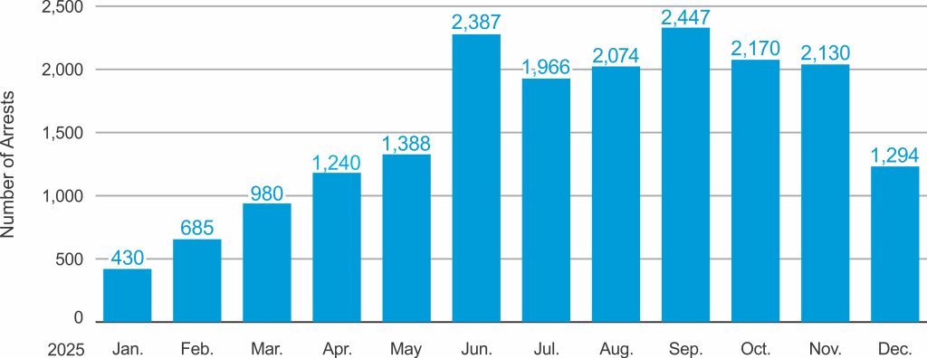 Figure 2: Number of CAG Christians Arrested, January–December 2025